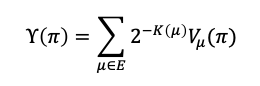 As a thought experiment, consider a formalized notion of intelligence defined in [3], where is the environment and is the agent policy, the intelligence is a discounted product of the Kolmogorov complexity of the environment and value function .