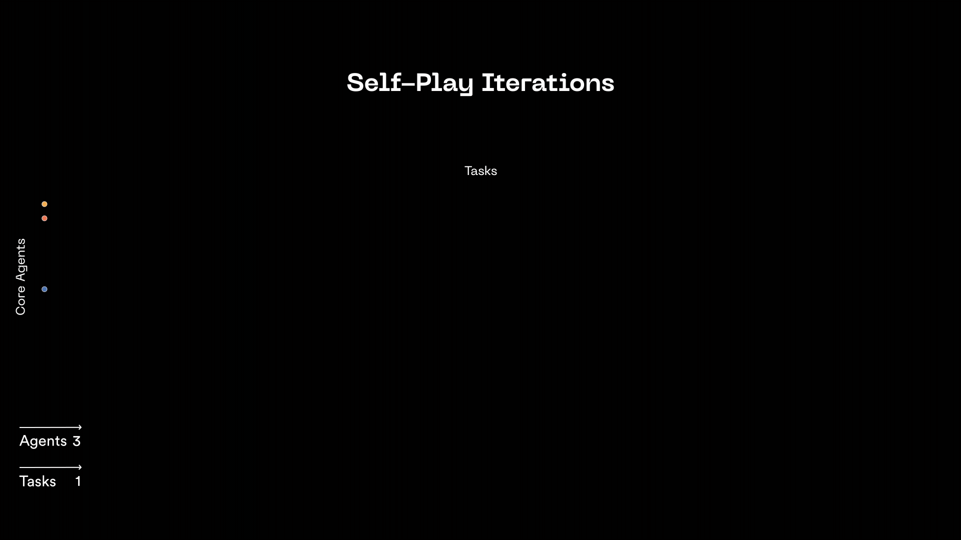 Figure 1 illustrates how the Orchestrator expands a single objective into a series of related tasks, and automatically generates the agent and multi-agent systems needed to solve them. Each column in the figure represents a distinct task variant, while each row corresponds to a unique agent. The vertical stack of agents in a column forms the multi-agent system assembled to complete that specific task.
